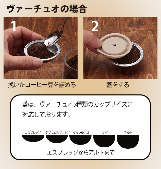 ヴァーチュオ用カプセルが無いことに説明がないですが、ヴァーチュオで使用する場合は、市販のカプセルの容器を再利用するのでしょうか?