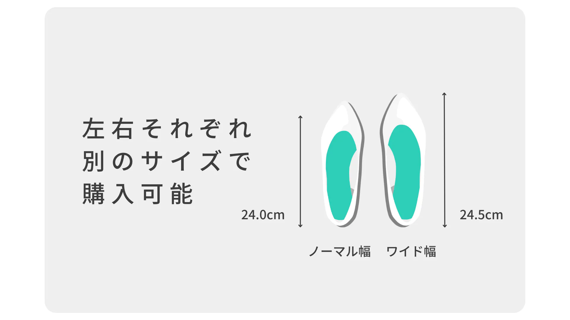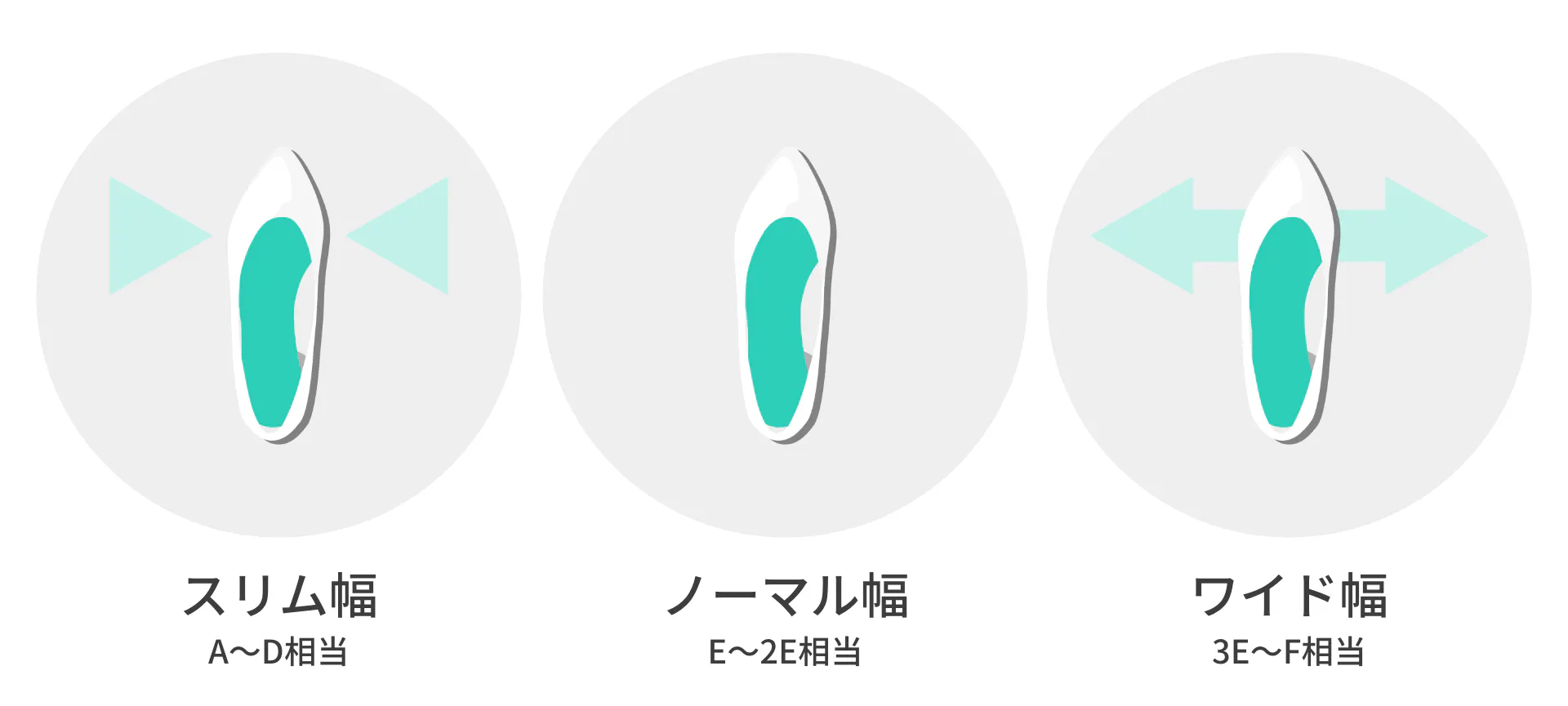 足長サイズだけでなく、「スリム幅」「ノーマル幅」「ワイド幅」の3種類の足幅から自分好みの履き心地を選べます。