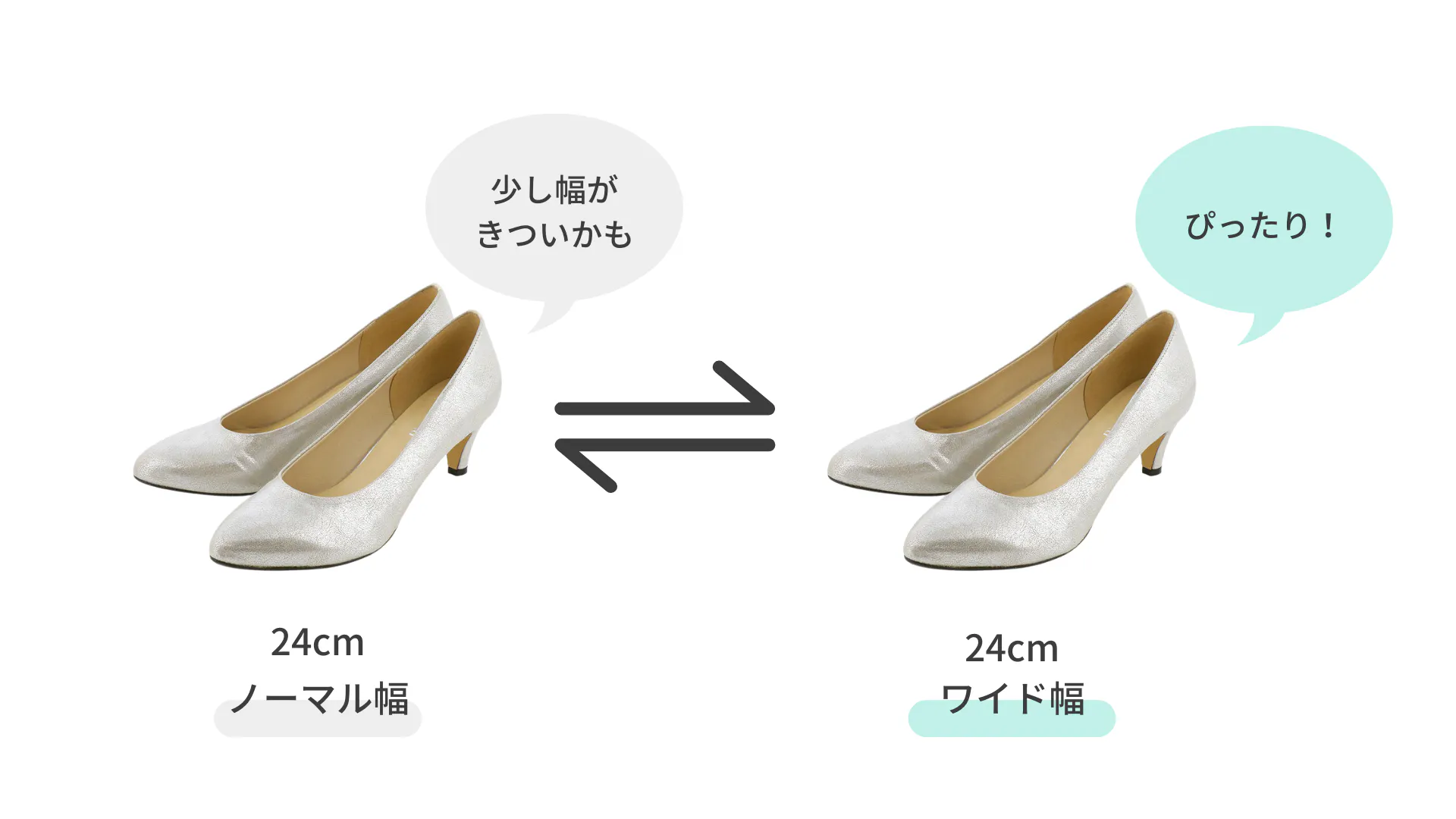 An idealでは一人でも多くのお客様にぴったりなパンプスをご提供できるよう、無料で1回サイズ交換ができます。
