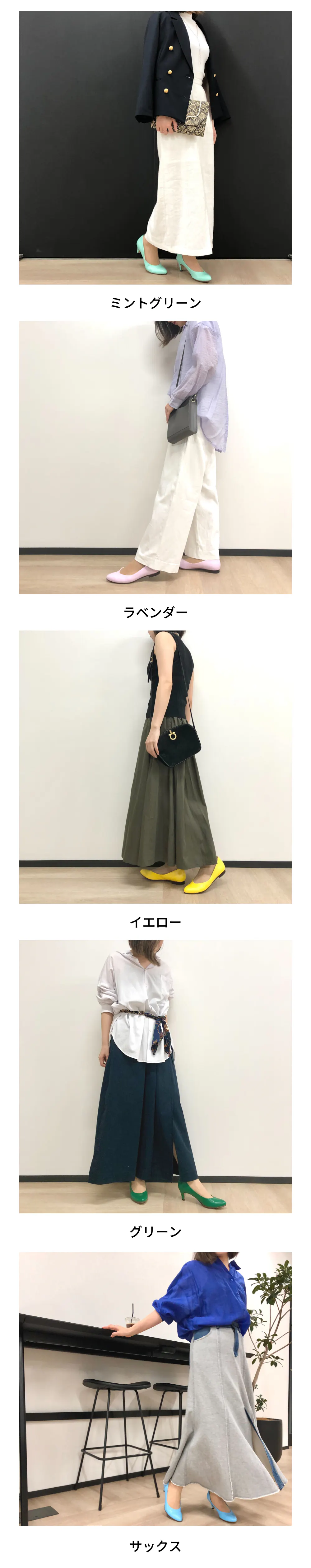 普段選ばないカラーこそ、パンプスを主役にしたコーディネートが楽しめます◎
