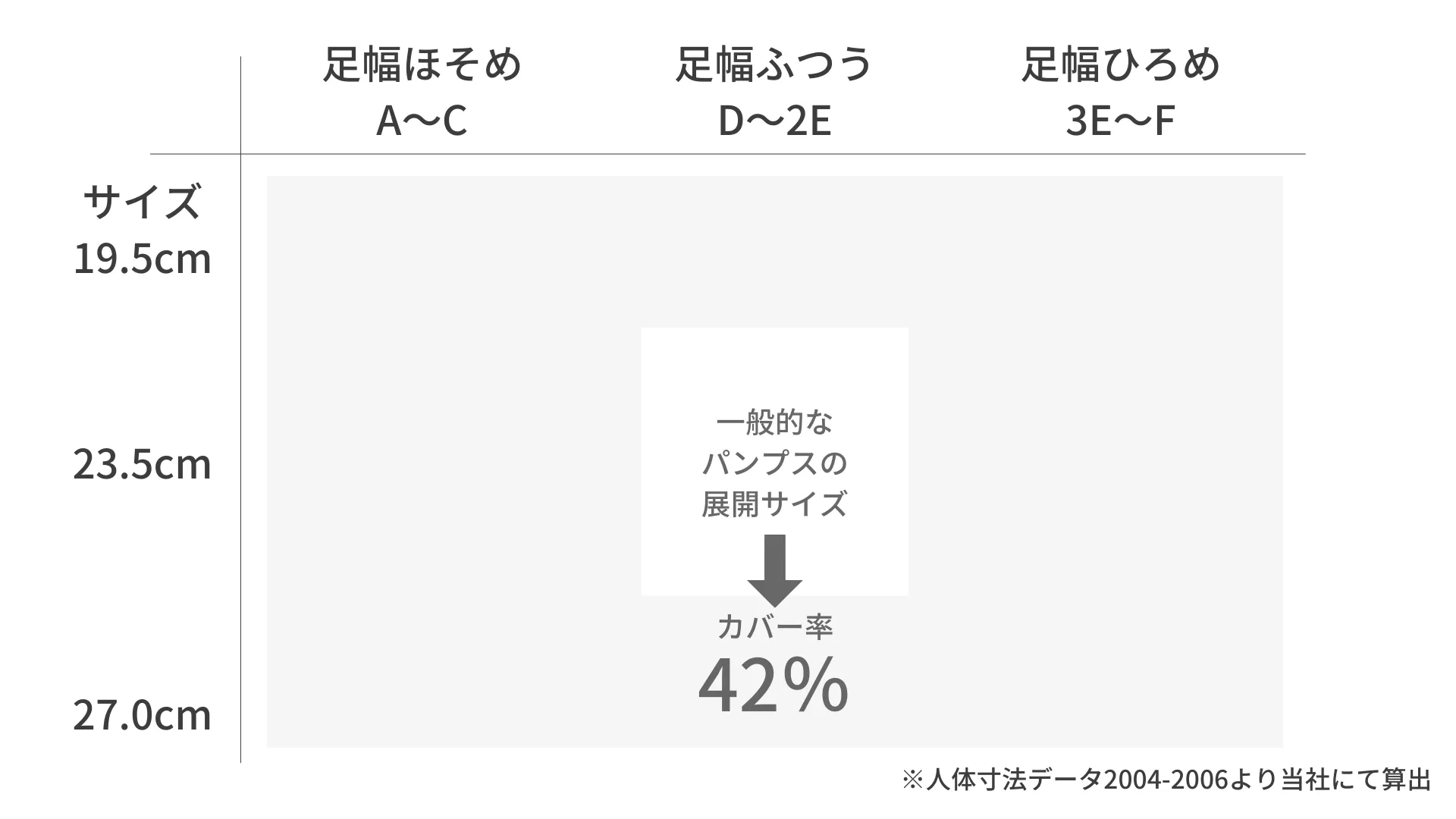 原因を紐解いていくと、一般的なパンプスの展開サイズでカバーできているのは約4割だけ。