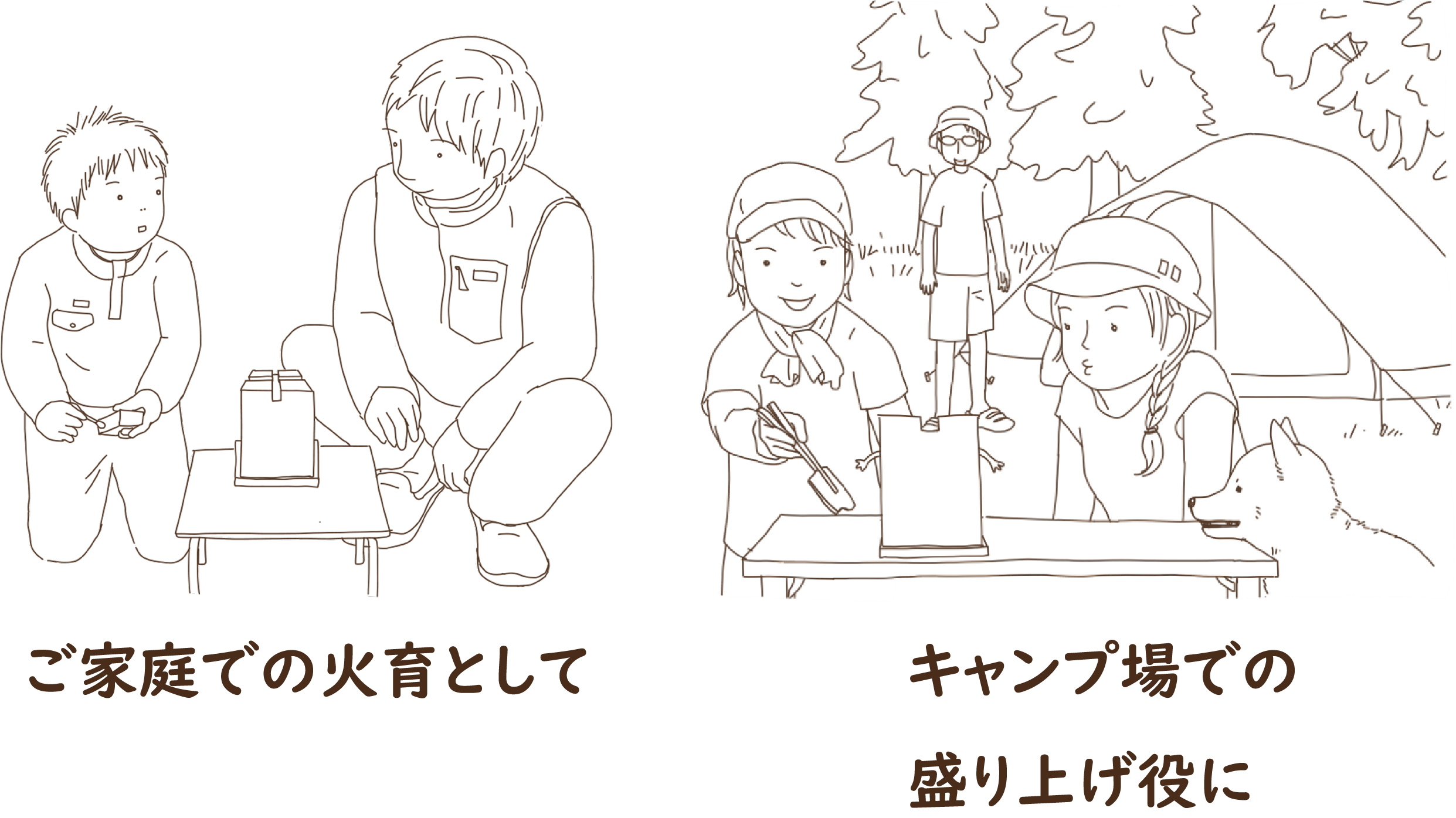 HIASOBIの揺らぐ火を家族みんなで囲んで眺めたり、火の付け方を大人が子どもに教えたり。家族みんながほっこりする時間になること間違いなしです。