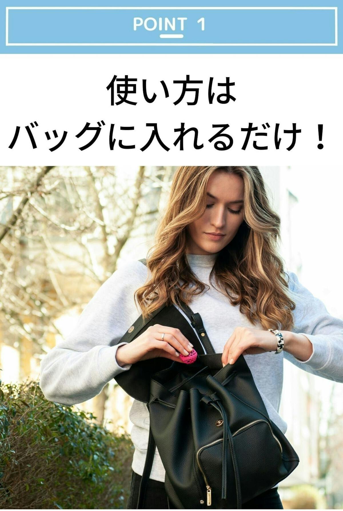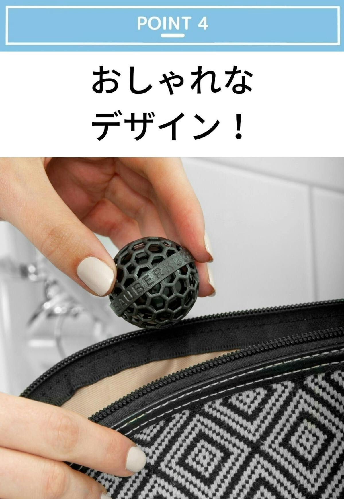 内側には、粘着性のボールがはいっており、外側のボールの穴から入ってきたゴミやホコリを吸着してバッグの中をきれいにします!