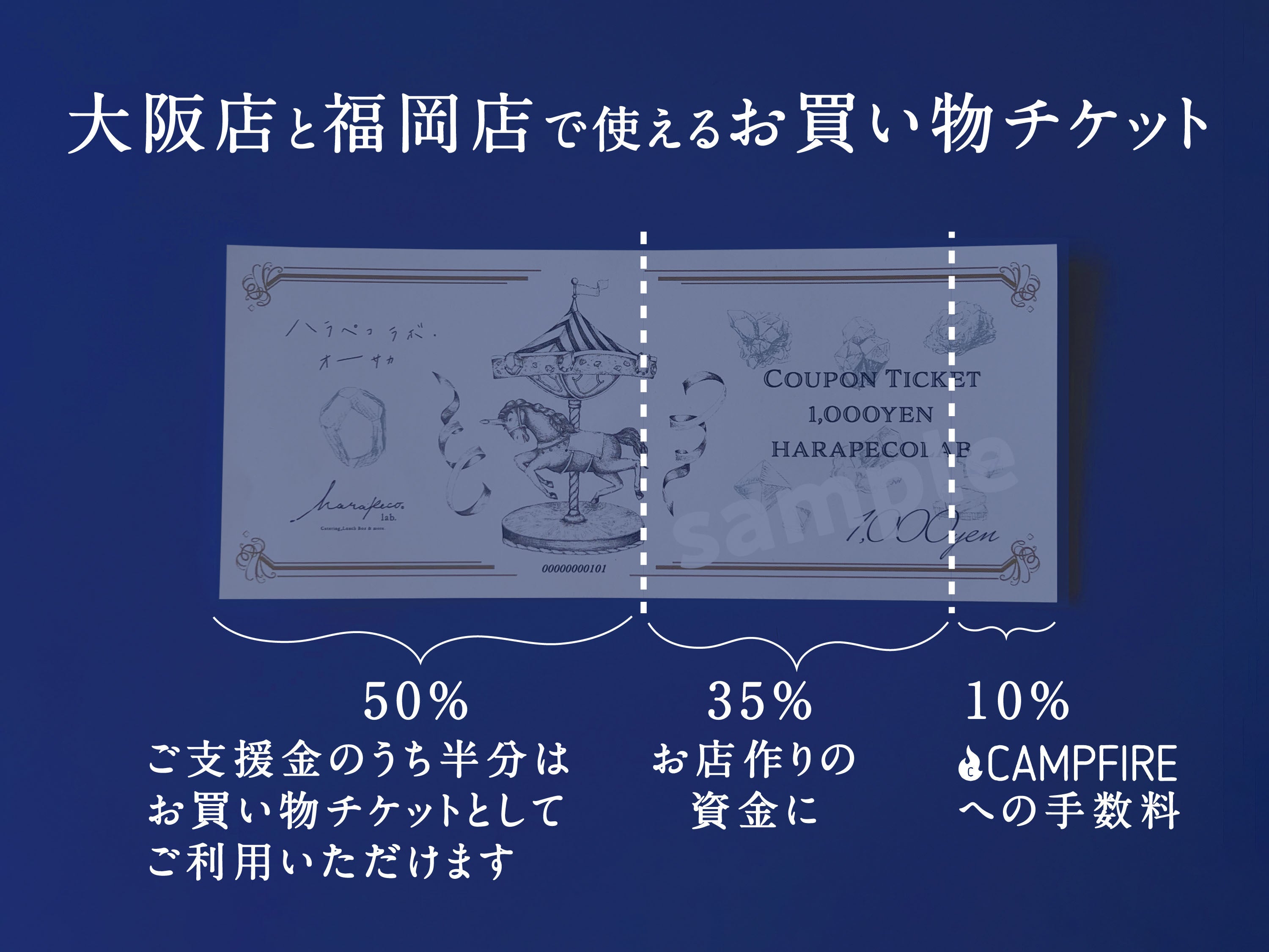 50,000円分のお買い物チケット(1,000円のお買い物チケット×50枚)+ご支援企業様&個人様ご紹介