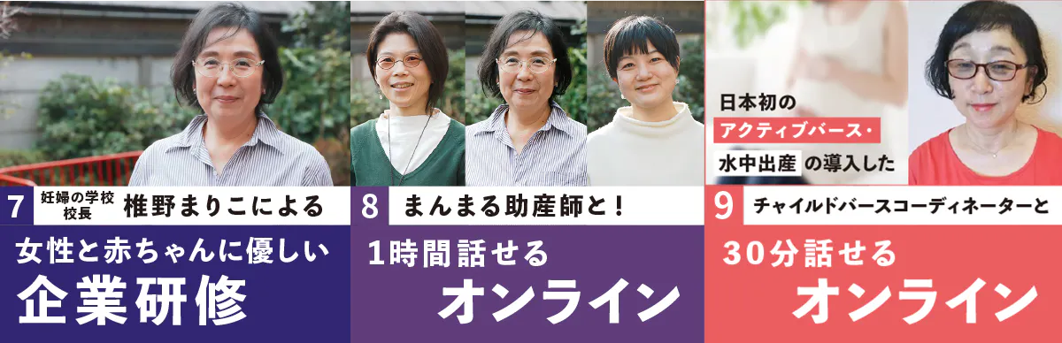 まんまる助産院の助産師(椎野まりこ、井口直子、槇原あすみ)と1時間オンラインで話せます!