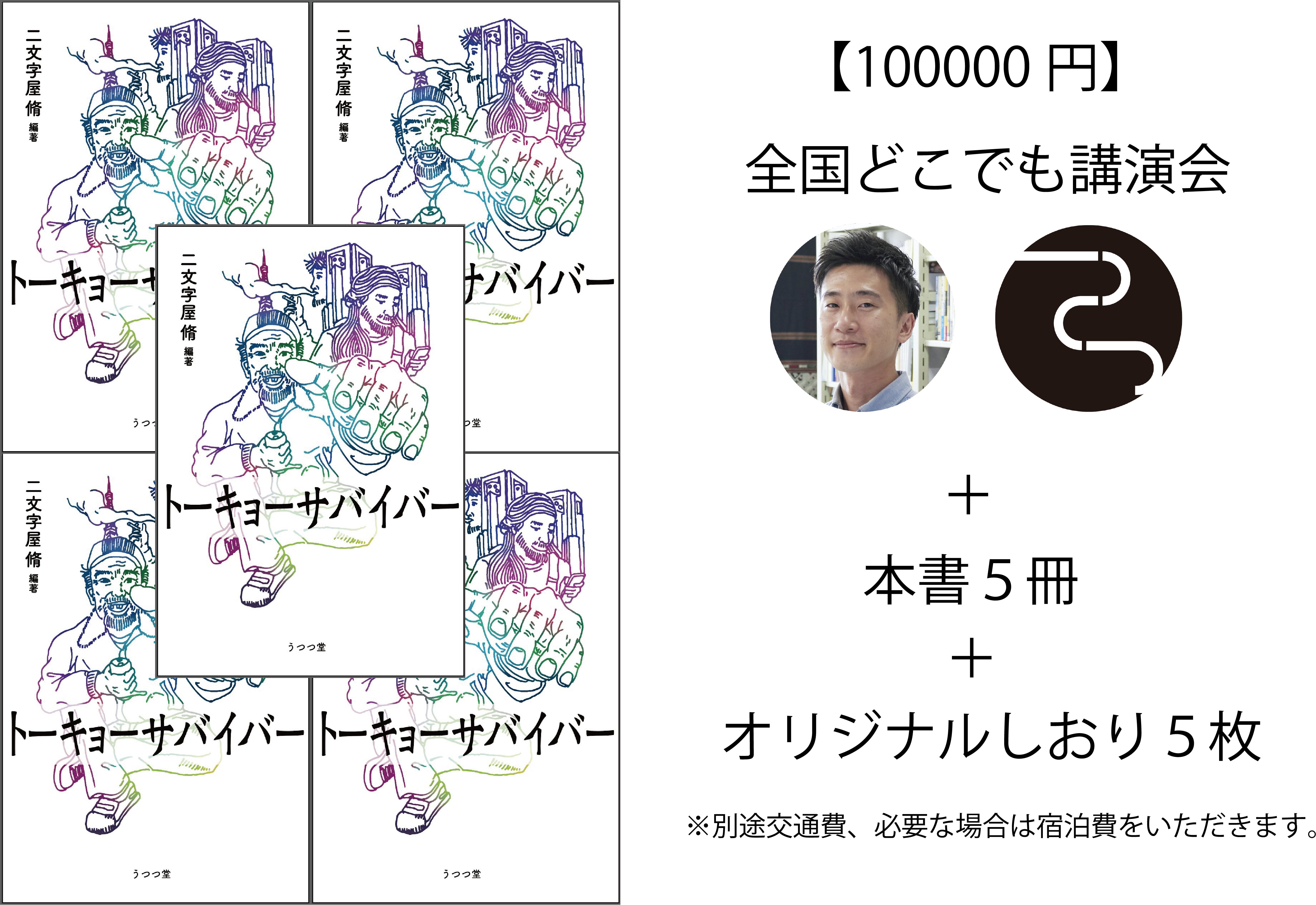 ・100,000円(書籍5冊、オリジナルしおり5枚、全国どこでも講演会)