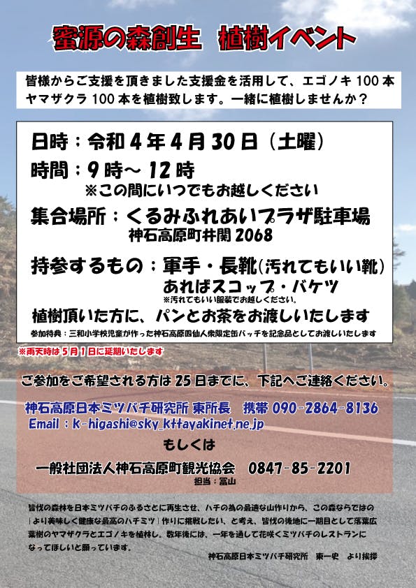 蜜源の森創生計画 植樹イベント開催のお知らせ