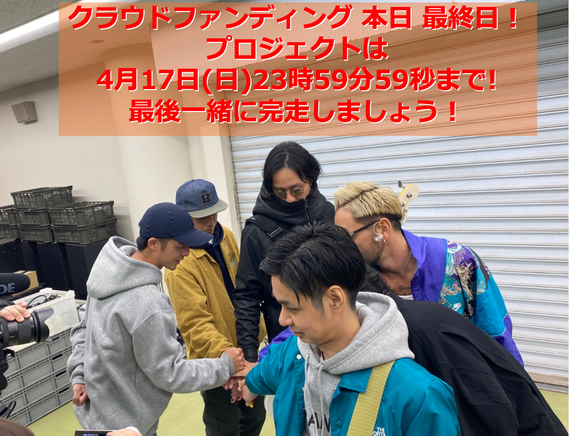 2022/04/17 14:35ついに この日が来ました!ORAGE RANGEと稲佐山プロジェクトと題したクラウドファンディングは本日 4月17日(日)最終日です!4月17日(日)23時59分59秒で終了です!この時間を何度も告知させてるのは、今回のリターンアイテムの権利を手に出来るのが ラストチャンスとなりますので 改めて ご確認お願いします!今回の稲佐山プロジェクトですが、2月半ばに 開催“計画中”という表現で 実行委員会の意思を発表させていただきました。コロナ禍での野外ライブの開催は 色んな賛否があると思い 世間の状況と皆様の声をしっかりと聞いた上で 判断しようと思いました。蓋を開けてみると、実際に 開催を後押ししてくれる声ばかりでした。皆様からの後押しがあったおかげで 本番まで3週間前での開催正式発表というギリギリのタイミングでも熱量を持って やりきることができました。そして、今回のクラウドファンディングも ライブ後も 皆様からの熱量が 全く 冷めることなく 逆にパワーをいただきました!そういう 皆さまの 気持ちに応えるために、リターンアイテムを愛情込めてお届けする準備を同時に行ってます。クラファンのプロジェクト実施期間中の活動報告(ブログ)は今回が最後となります。次回の活動報告は プロジェクト実施終了後にお送りさせていただきます。最後に このタイトル画面の写真は 稲佐山ライブ直前のメンバーの円陣です!リターンアイテムの 稲佐山配信ライブチケット、ドキュメンタリー、写真集 は この円陣の気持ちのように 今回の企画をダイレクトに感じてもらえるリターンだと感じてます!皆さんと 最後 もう一回 ワンチームになって 本日の24時を迎えたいです!もしよければ、一緒にカウントダウンして 見届けてもらえると嬉しいです!イナサヤマーックス!!!ORANGE RANGE稲佐山実行委員会 もっと見る