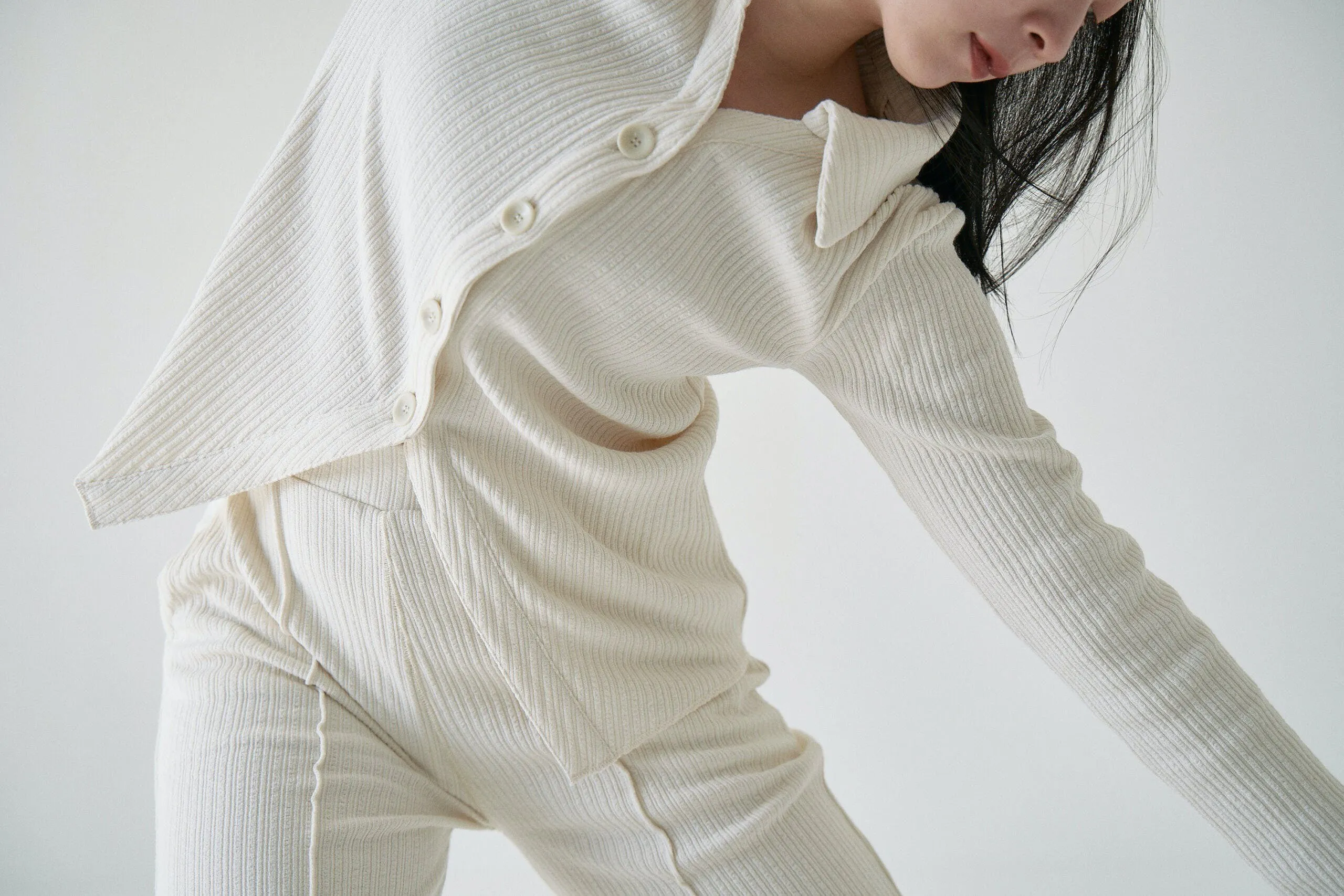 体に優しく沿って快適な着心地鎖骨と首筋を美しく見せる首元や、フィットしたウエスト。ダンサーの身体美を活かすシルエットに仕上げました。