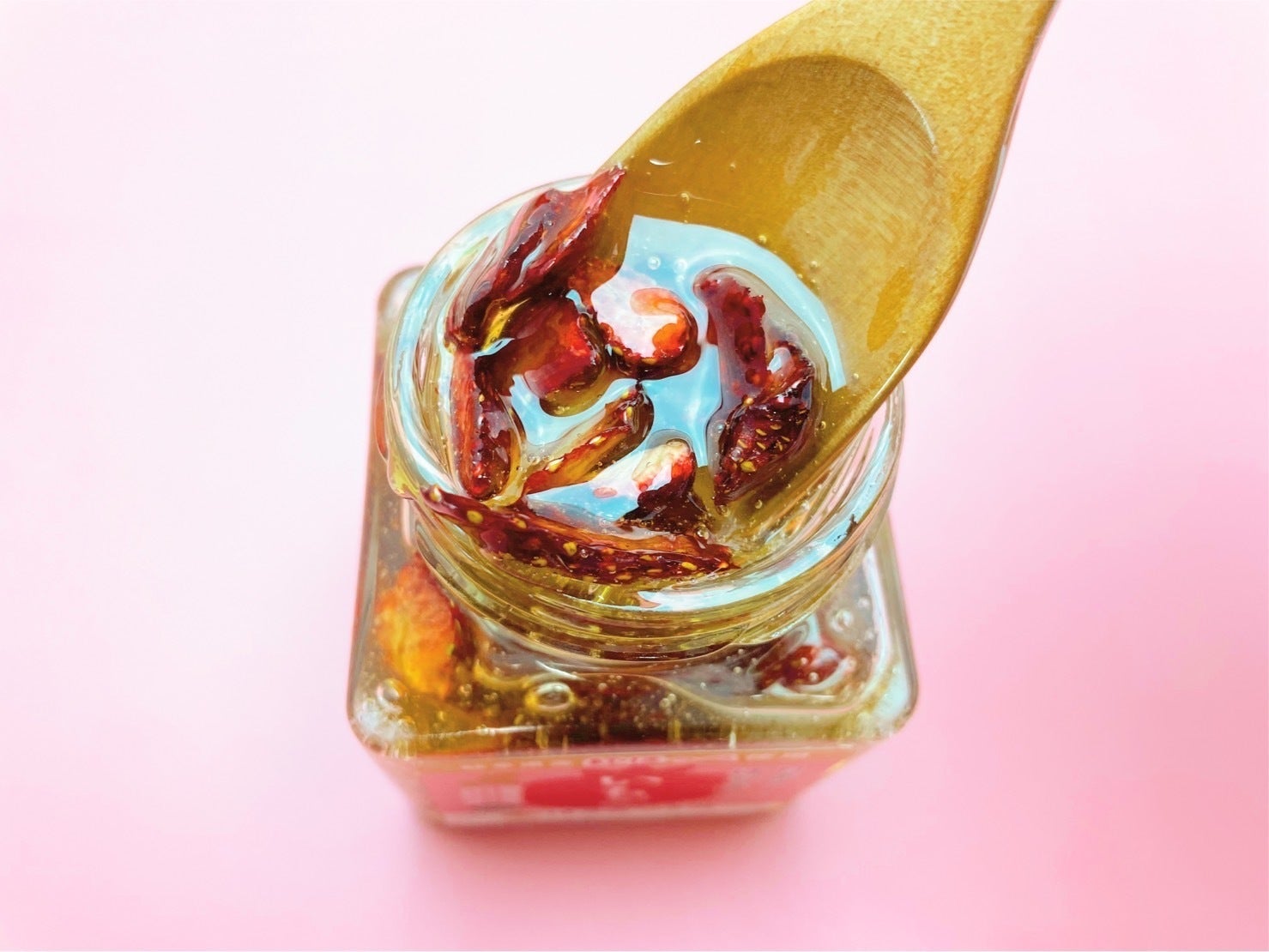 ①岐阜県産天然はちみつ に、②岐阜県山県市産いちご紅ほっぺ をじっくり漬け込み、はちみつの持つ濃厚な「まるごと岐阜県が楽しめる!おいしい苺はちみつ」が誕生しました!