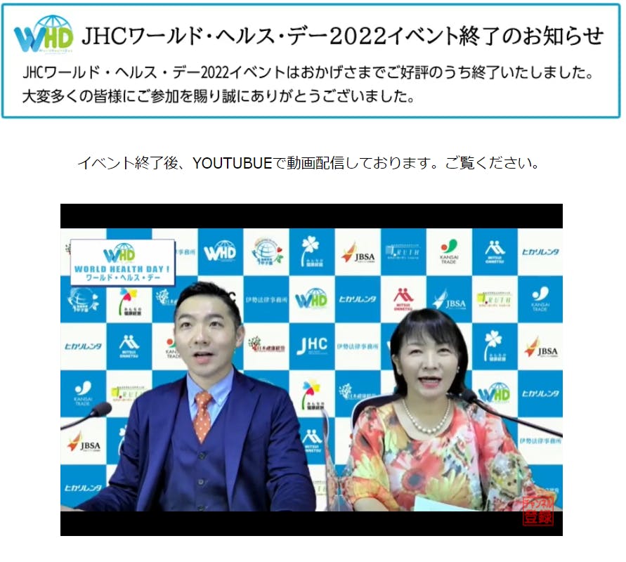 御礼!【JHCワールド・ヘルス・デー2022 】が無事に開催されました!!