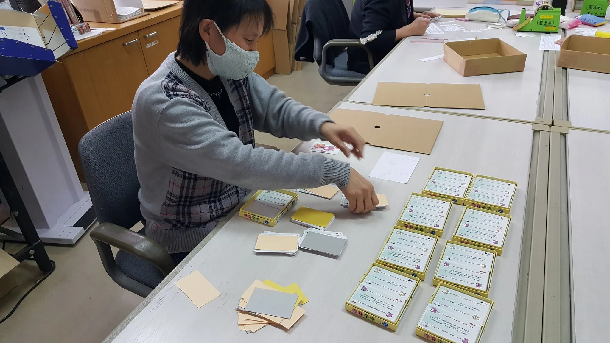 今まさに、障害者作業施設にて、印刷や箱詰など仕上げ作業を行ってもらっています。