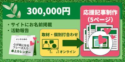 協賛パートナーとして「メンタル本大賞」サイトにてご紹介します。金額に応じたページ数で、支援者の方を応援させていただく記事(メンタルに関連した内容)を心を込めて制作し、PRさせていただきます。