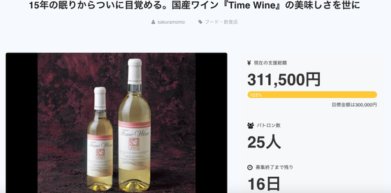 目標金額100%も達成いたしまして、タイムワインを広めるために今後尽力いたします。