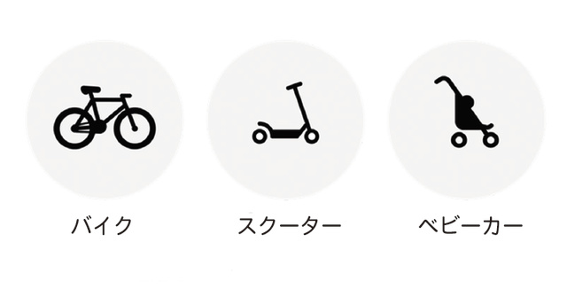 自転車はもちろんのこと、22.2mmから31.8mmのバーのサイズでしたらスクーター、ベビーカーなどにも取り付け可能。