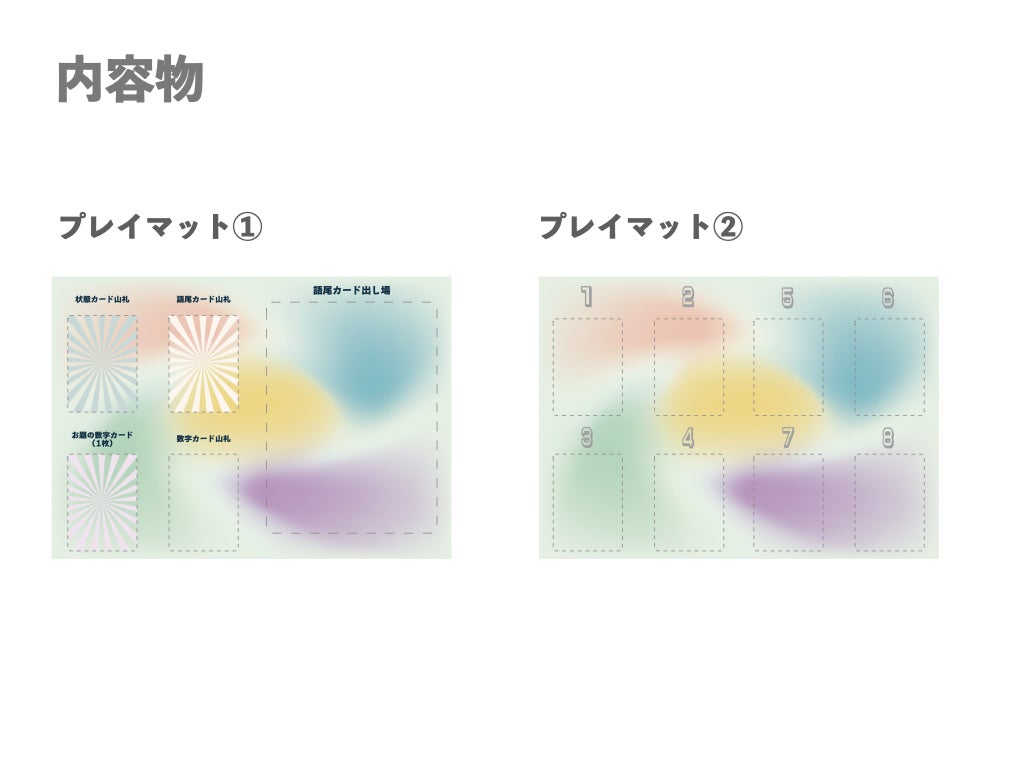 語尾カード:語尾と効果が書かれたカード。効果を使用することでゲームを有利に進めることができます。