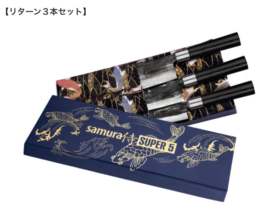 今回のリターンは、「ユーティリティナイフ」「三徳包丁」「菜切り包丁」の3種類。それぞれ、食材によって使い分けることをお勧めします。