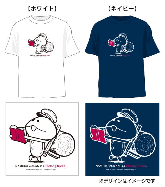 「なめこ大図鑑」を読み勉学に励むなめこ(菌次郎)の描き下ろしイラストをデザインしたTシャツです。