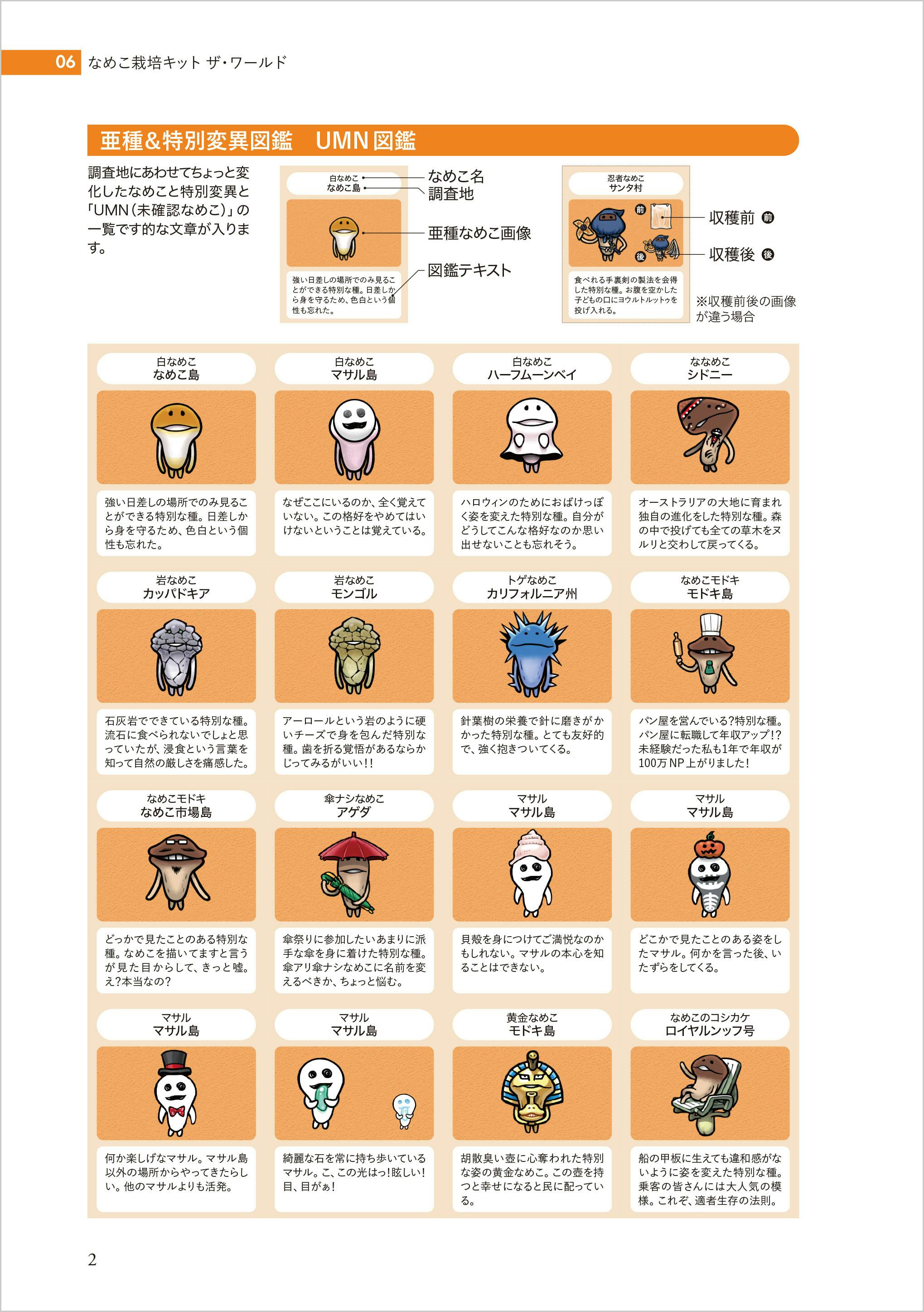 2020年12月末までにアプリに登場したなめこ全1101種を完全収録する図鑑です。