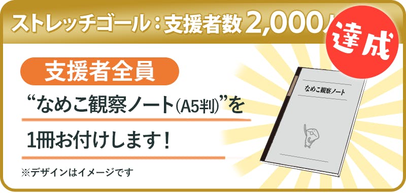 ストレッチゴール[支援者数2000人]を達成した場合、支援者全員にプラン1口につき「なめこ観察ノート(A5判)」を1冊お付けします。
