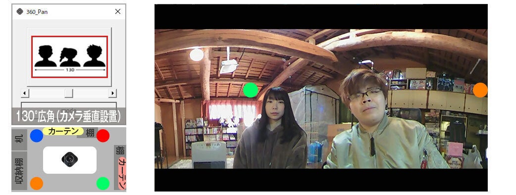 パノラマ映像から指定角度映像の1名を切り取りフォーカスして下に拡大表示。