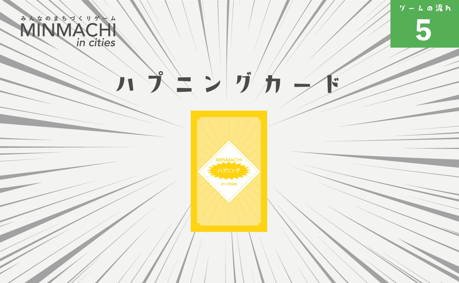 地域にはさまざまなハプニングが起こります。カードを引いてその指示に従ってください。ハプニングには「悪いハプニング」だけではなく「よいハプニング」も含まれます。どんなハプニングに対しても対応できるような柔軟性のあるまちを作っていくことが求められることにここで気付かされます。