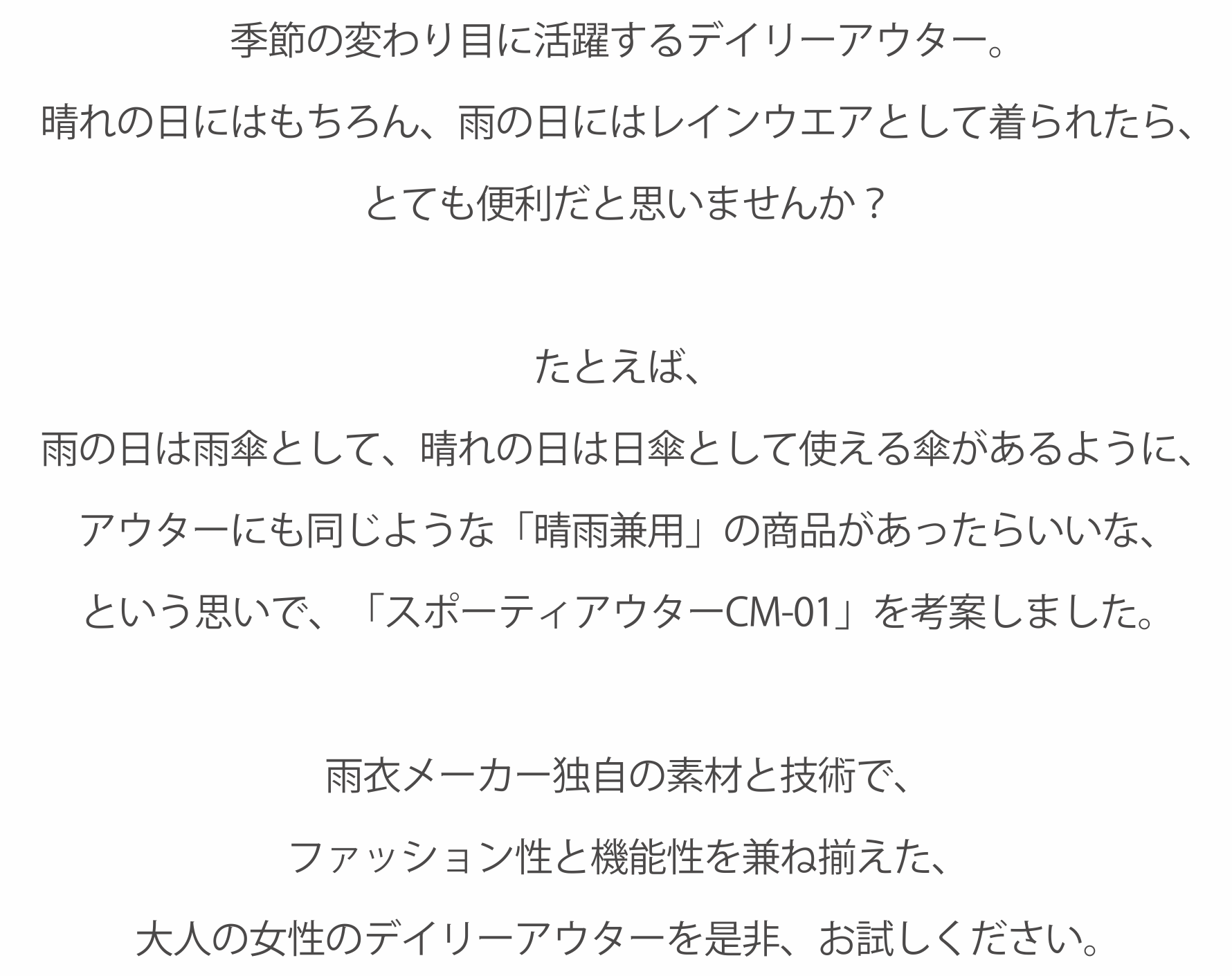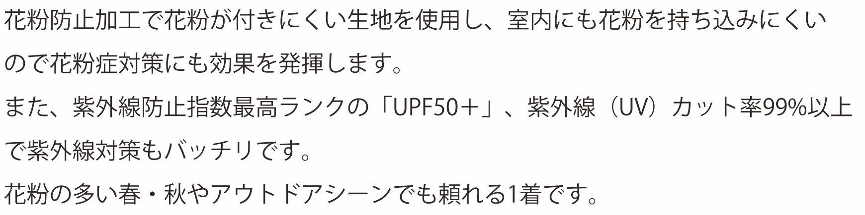 #レインウェア #防水 #はっ水 #花粉 #UVカット #レディースアウター