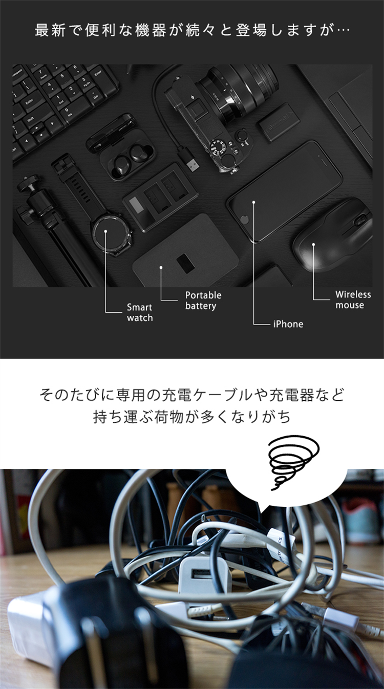 ●カバンの中で複数の充電器があるため、使いたい時にすぐに探せない…