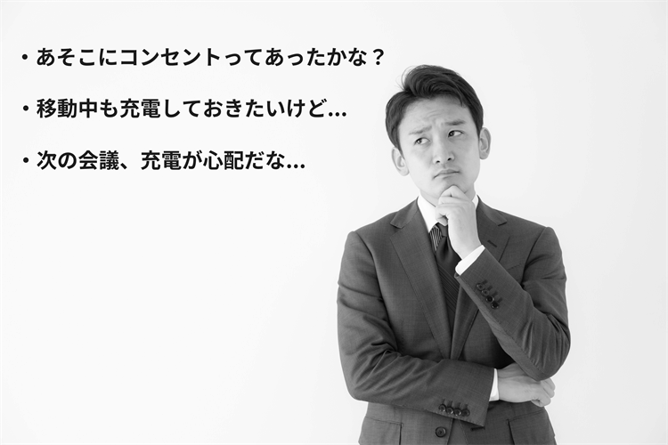 ここまでご説明したように、世界最小・最軽量クラスの「AKRYPS PD 100W GaN AC」は、荷物にならず、出張先や外出先でもすごく便利ですが、‟そもそもコンセントがないと使えない”ので、主に外で働かれる方には『コンセント探し』が悩みの種になってしまうかも...