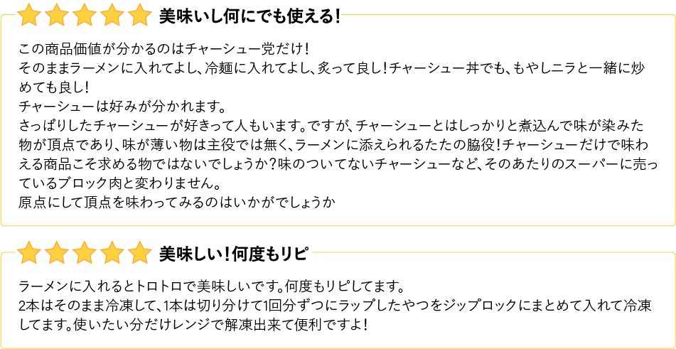 実際に味わった方々の声こそが『絶品とろけるチャーシュー』の品質の証です!