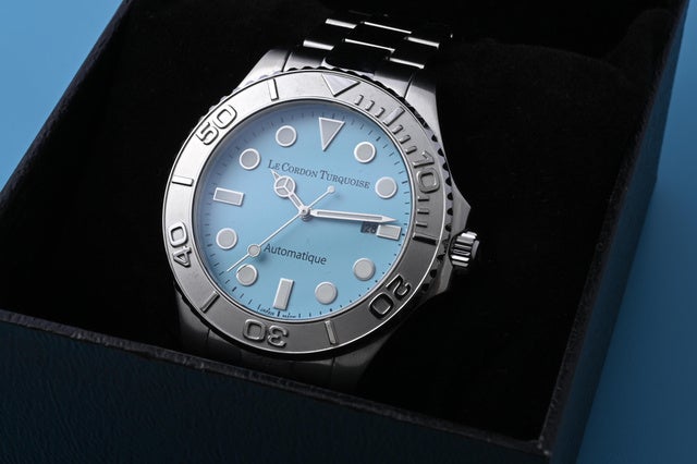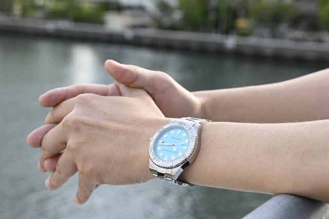 ダイヤルの美しいアイスブルーに加え、