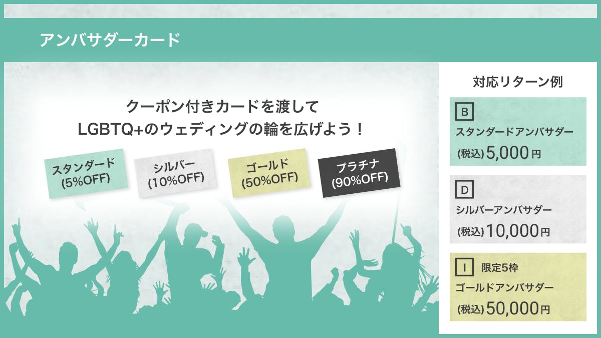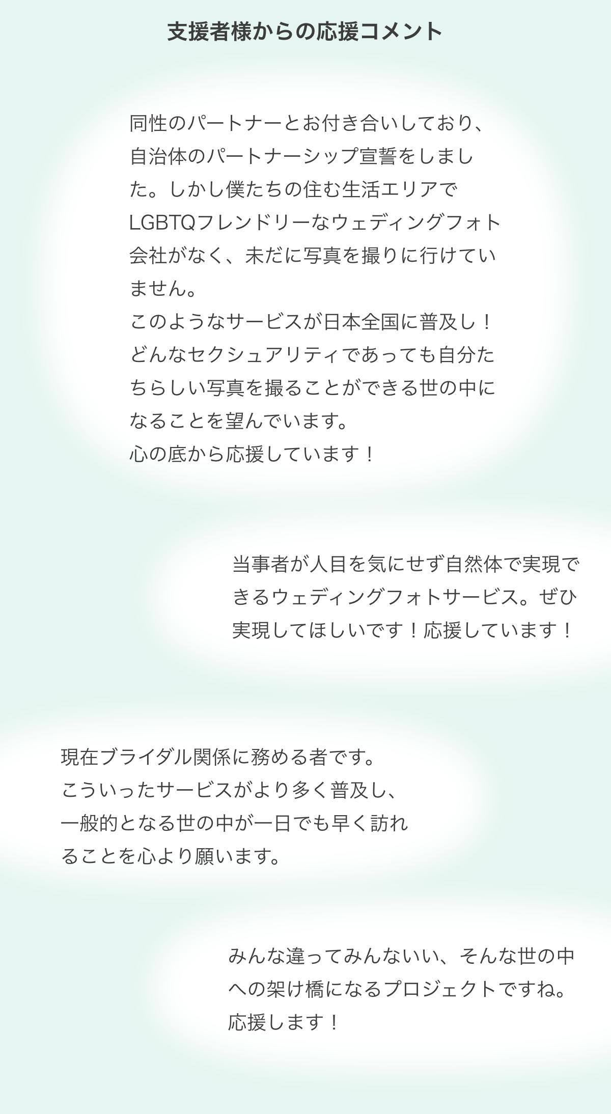 このプロジェクトを通して応援いただきつつ、皆さんと一緒にセクシュアリティ関係なくウェディングという特別な記念を残せる世の中をつくっていきたいです。