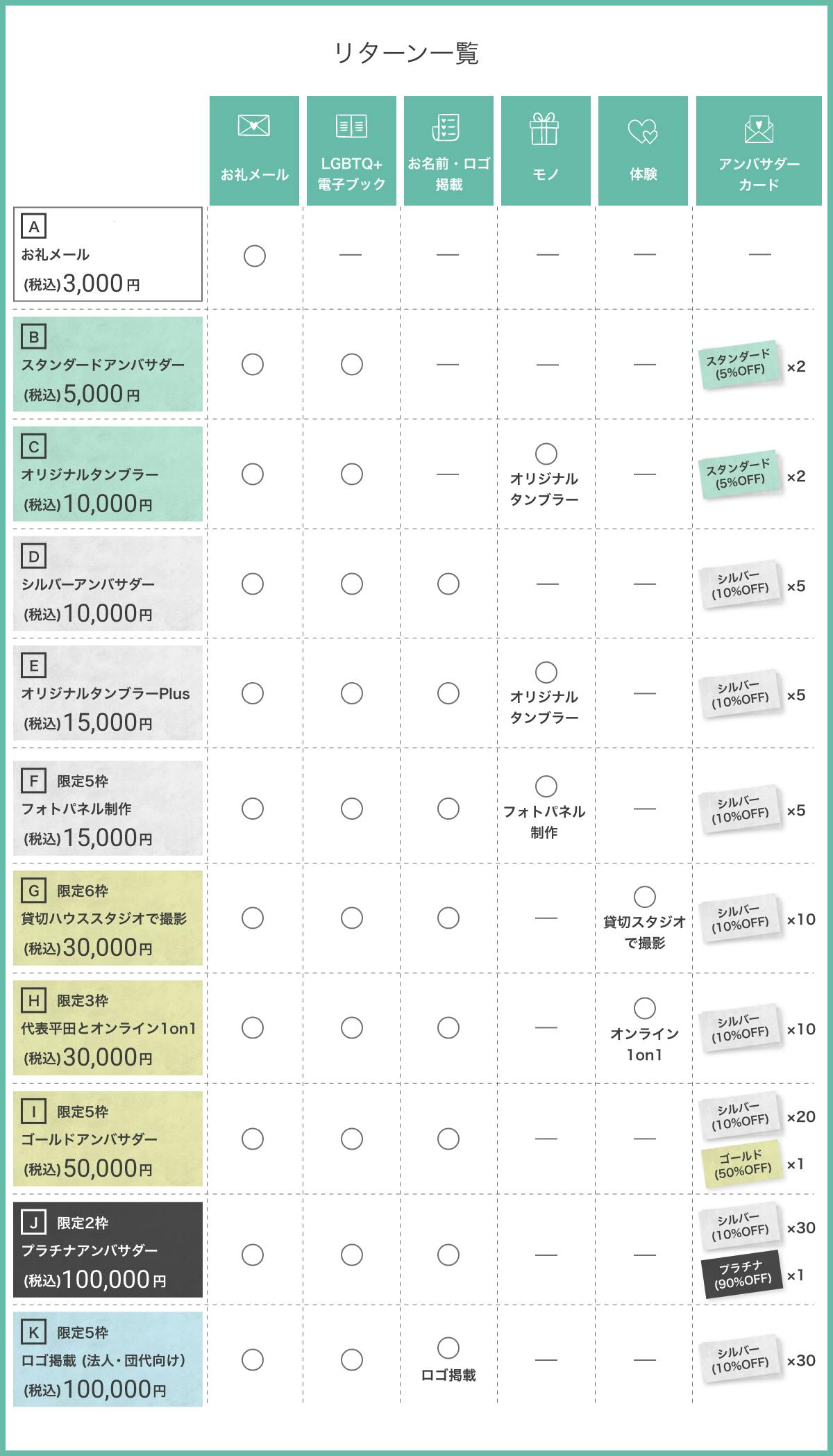 ここからは、ご支援いただいた皆様へのリターンを紹介させてください。