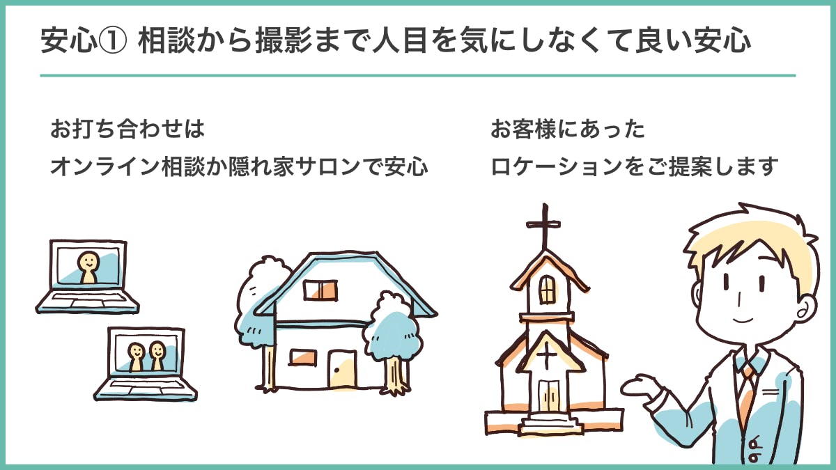 そこで、私たちは「当事者が本当に安心してふたりらしさを残せる」ためには何が必要なのかを考え「3つの安心」を提供することにしました。