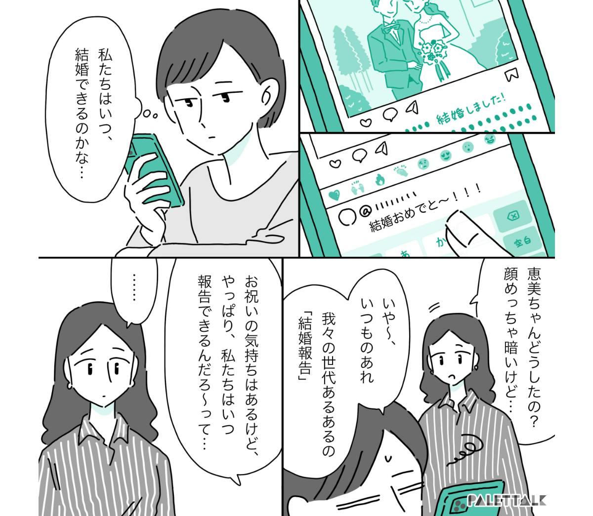 周りの友人たちが結婚して、子どもが生まれていく。自分だけは取り残されて、みんなはどんどんと次のステージへと進んでいくように見えて、ゲームの1面をグルグルと抜け出せずにいるようで、自分の未来を描けずに、絶望していた。