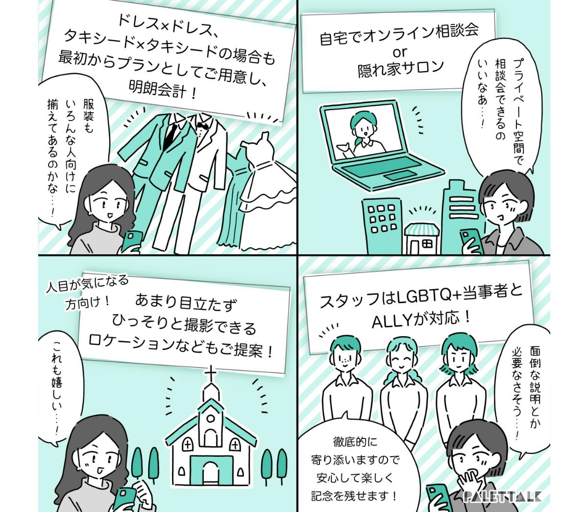 ですが探してみると、表面上LGBTQ+フレンドリーなサービスは増えてきつつも、本当に当事者が安心してふたりらしい姿を残せるサービスがまだまだ少ないことに気がつきました。
