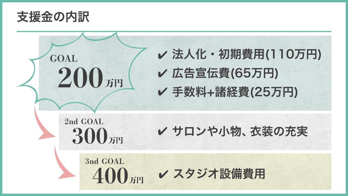 目標金額を上回った場合は、サロンの設備投資、プラン拡充などに支援金を大切に使わせていただく予定です。