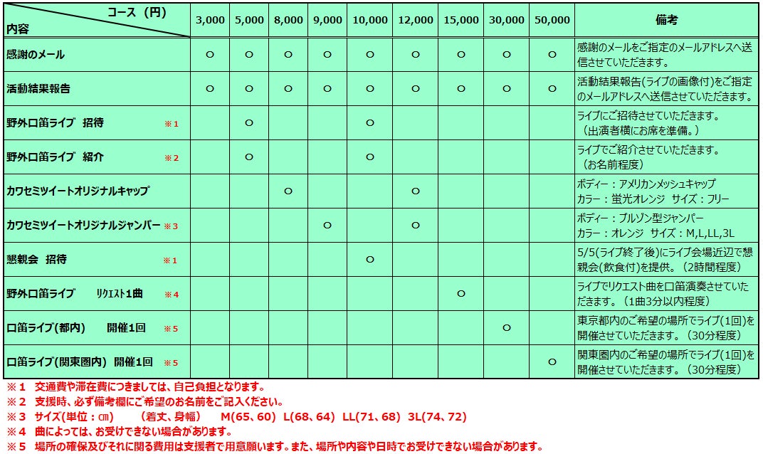 今回のプロジェクトが上手くいけば、もっと野外口笛ライブが開催でき、沢山の方々に笑顔や元気を届けることが出来ます。