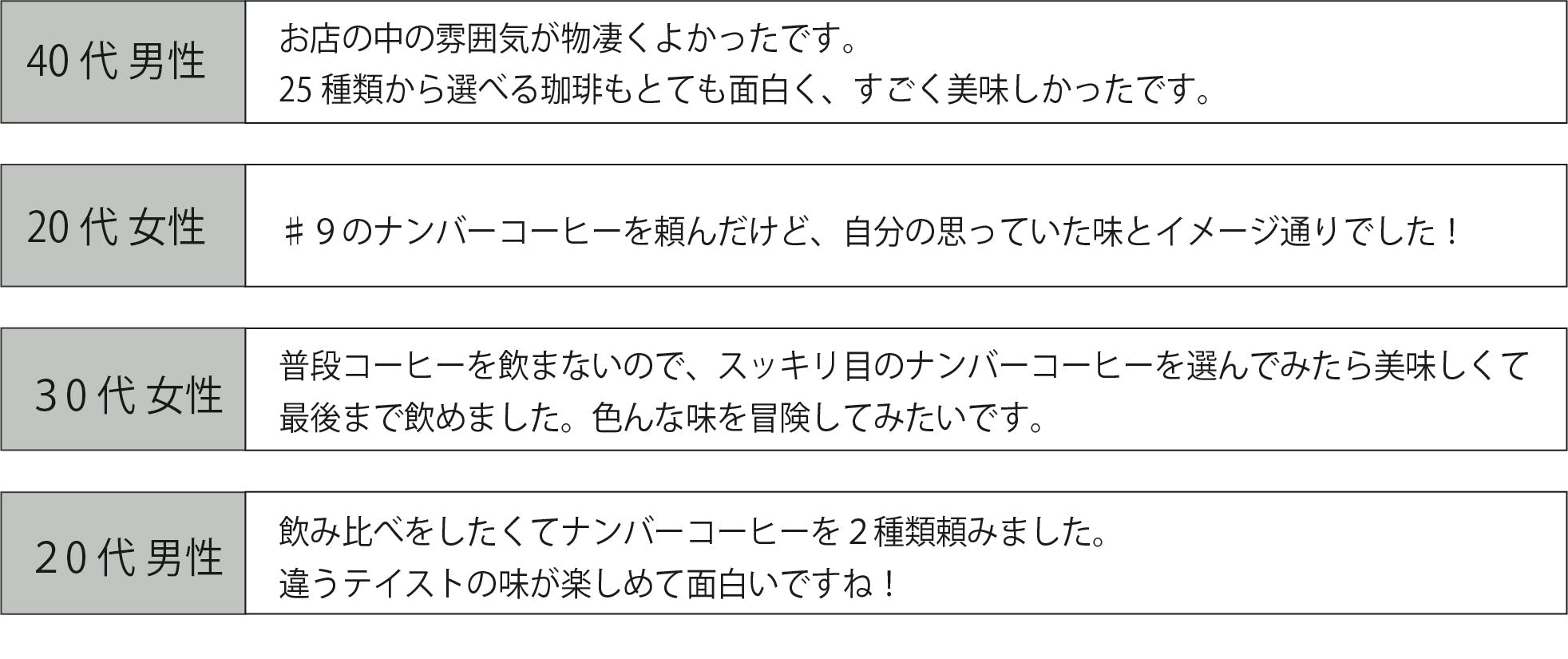 そしてもう一つの願い、それは気分によって味が選べるこの「ナンバーコーヒー」を普段の生活に取り込んでもらいたいということ。