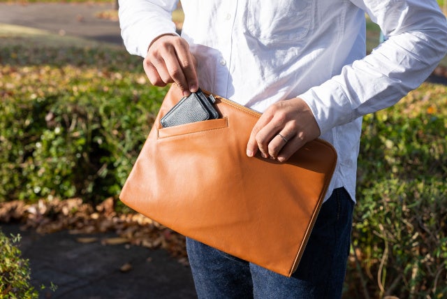 ゾルゲクラッチは、本革なのに、わずか480gと軽く、コンパクト設計。