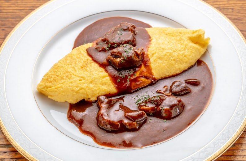 オムレツのビーフシチューかけ