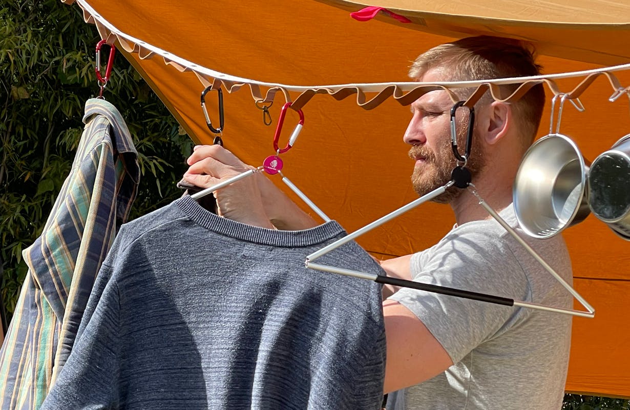 クローゼットがないアウトドアでは「ハンガー」が想像以上に役に立ちます!