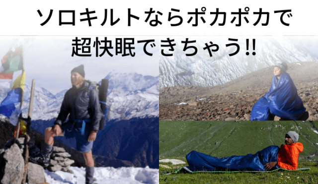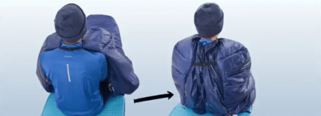 A:従来の寝袋は仰向けに寝る場合のみうまく機能しますが、ソロキルトにはフードがあり、キルトを体や頭に簡単に巻き付けることができます。隙間風(ドラフト)が入らないようにし、あらゆる寝方でも快適に頭を覆うことができます。