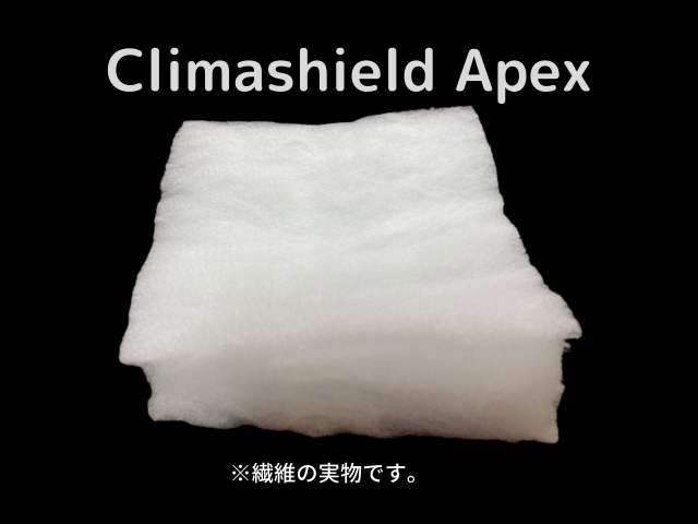 Climashield APEXは重量及び熱効率の点で大変優れており、超軽量で熱効率の高い連続フィラメント断熱材です。