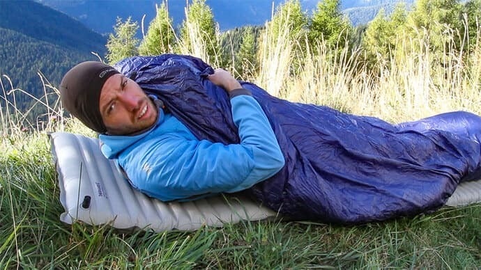 寝袋が湿ってなかなか温まらず寝れない・・・