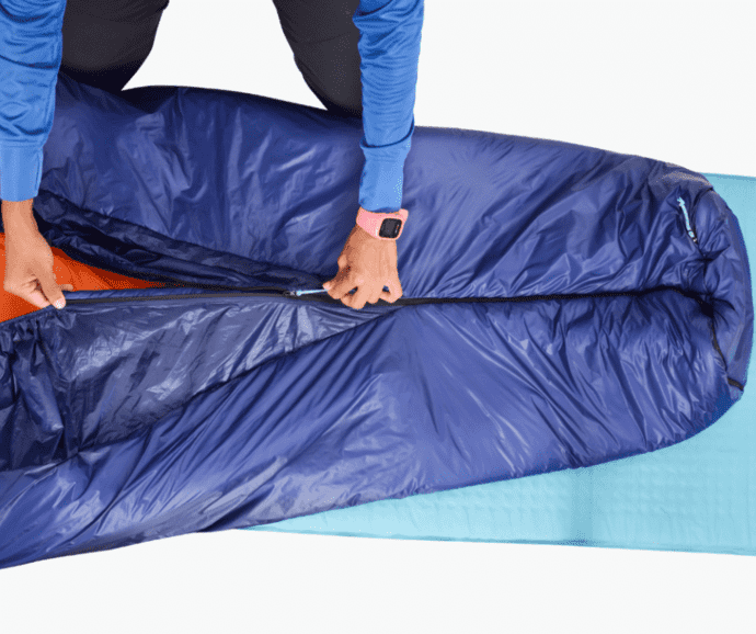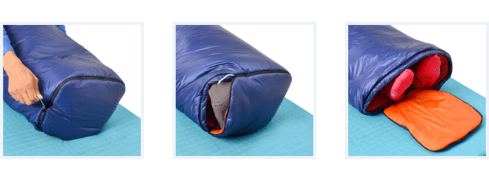8年間改良を重ね、快適な寝袋の設計を実現するために背中の部分を排除しました。