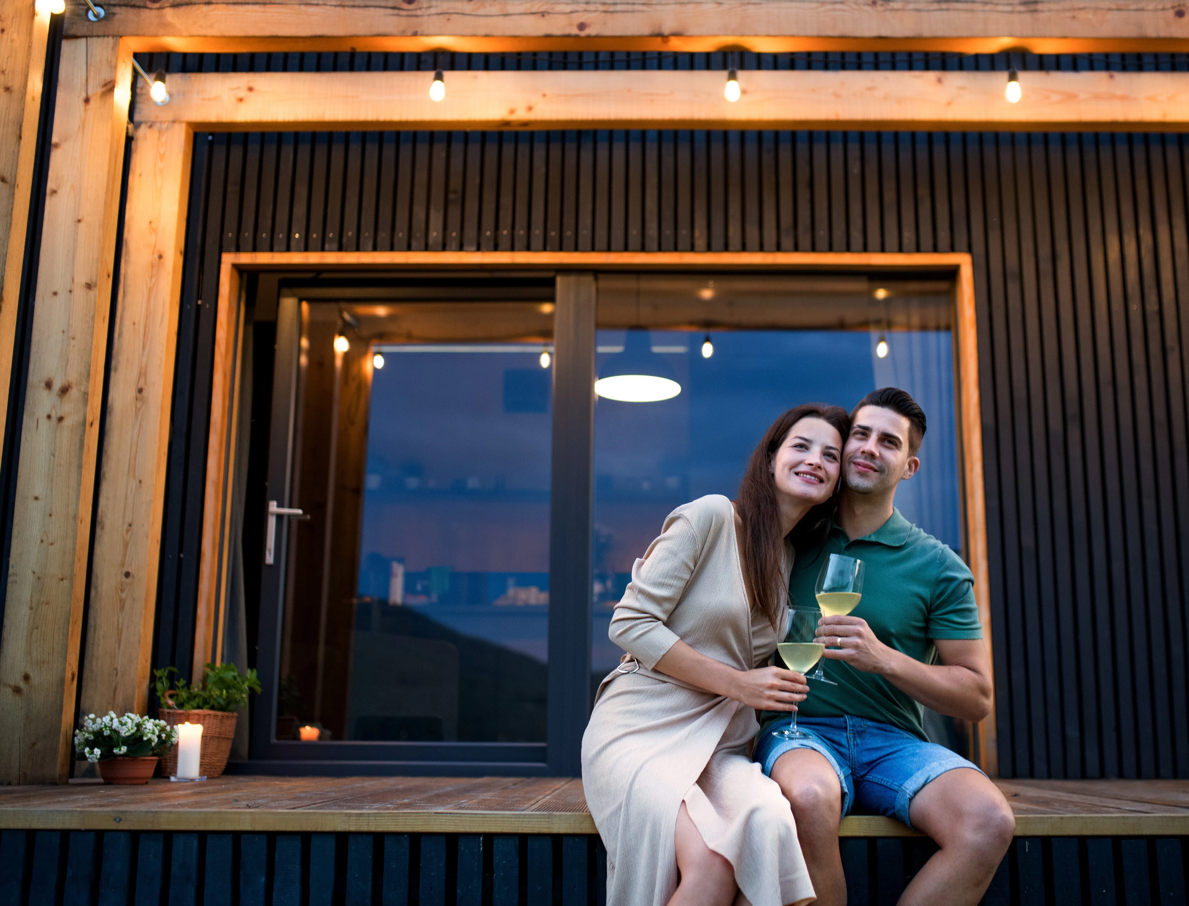 塀作り・屋外ランタン設置(ソーラーにより40個の電球が夜間自動点灯)