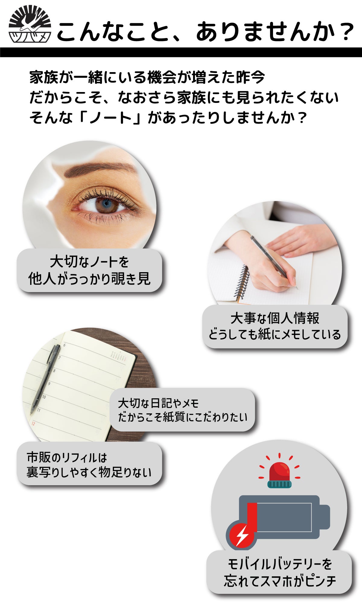 パソコンならある程度の対策がありますが、 紙のノートや手帳ではなかなか難しいですよね