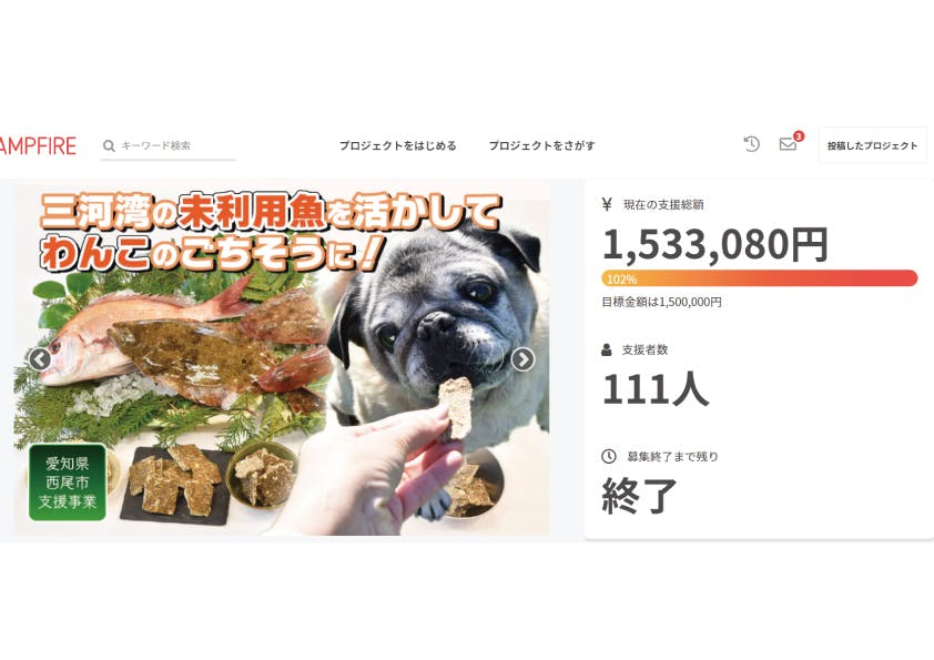2022/05/02 14:28約1ヵ月の挑戦をさせていただいた三河湾の未利用魚活用プロジェクトのクラウドファンディングが4/28に終了いたしました。ご支援総額:1,533,080円ご支援者数:111人皆さまのあたたかい応援・ご支援のおかげで、無事に目標金額を達成することができました。本当にありがとうございます。心からお礼申し上げます。クラウドファンディングは終了しましたが、プロジェクトとしてはここからがスタートであり、カネタ水産一同、想いをこめて取り組んでいきたいと思います。支援の際に選択いただいたリターンにつきましては、連休明けの5月中旬より順次ご支援者さまへご案内・発送などを進めてまいります。詳細につきましてはキャンプファイヤーメッセージにてご連絡させていただきます。リターンの到着まで楽しみにお待ちいただけると嬉しいです。重ねてにはなりますが、この度は「ぽわんこ」開発の応援・ご支援いただき誠にありがとうございました。今後も「ぽわんこ」、そして海の幸を守る活動の応援をいただけますよう何卒よろしくお願いいたします。 もっと見る