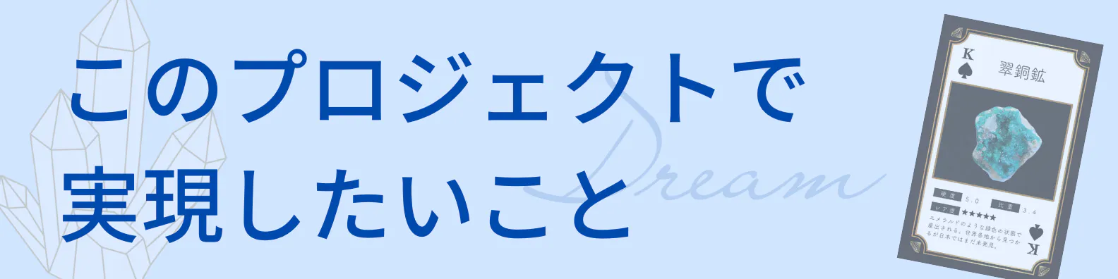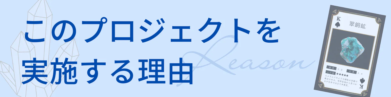 僕は、前回のクラウドファンディングを始めるとき、「僕は鉱物が大好きですが、僕の周りには鉱物好きの友達が少ないので、この鉱物のトランプカードを使って、鉱物をもっと知ってもらい、鉱物好きの子供を増やしたいです。 」と話しました。